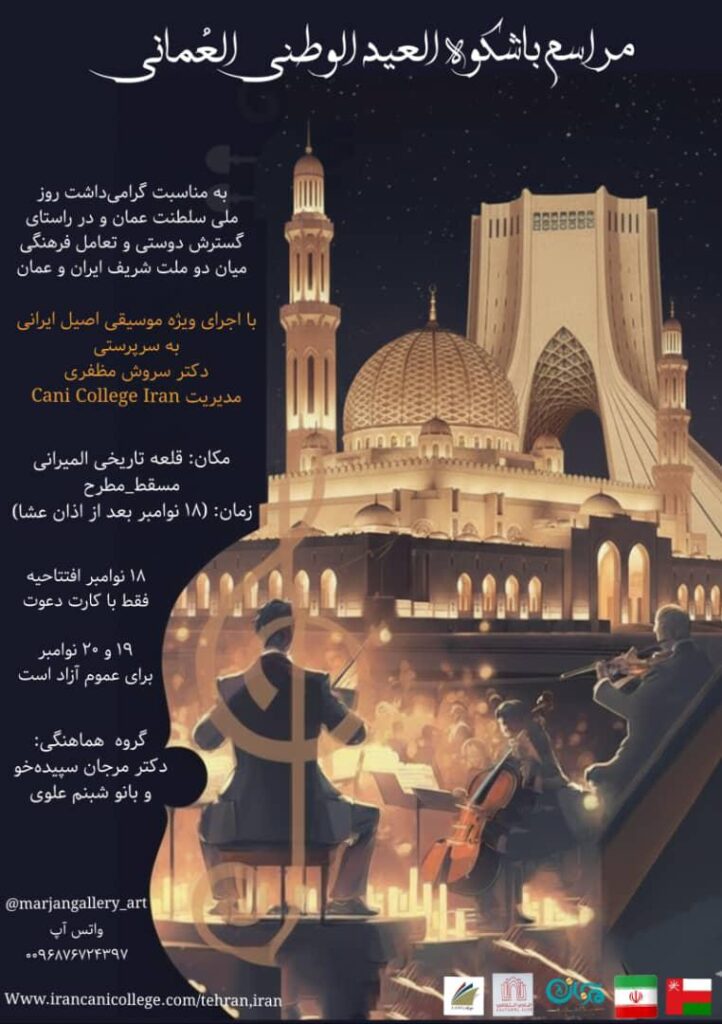 In partnership with local arts organizers, Cani College Iran will host a special program at Al-Mirani Fort (Muscat/Muttrah) featuring a live performance of authentic Iranian music under the supervision of Dr. Soroush Mozaffari. The opening on 18 November is by invitation only; 19–20 November are open to the public. The event aims to strengthen friendship […]